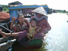 プルサット県のトンレサップ湖の岸に立つ保健所は5メートル以上もある支柱の上に建てられている。長い階段を登って、保健婦に「何でこんなに高く作っているの」と聞くと、雨期に水がここまで出上がるという。湖岸までそれほど遠くはないが、雨期には現在一面のブッシュになっている広大な土地が全て水没するというから想像が大変だ。トンレサップ湖はメコン川の貯水池のようになっているので、乾期と雨期では水位が8メートルも変わるという話を聞いたことがある。 湖岸に続く水上の家が密集する村にボートで出てみて驚いた。小船を操る三角笠の物売りから網を打つ子供たちまで、僕が10年前に仕事をしていた馴染みのあるベトナムの水路の風景そのものなのである。そして出会う顔はみんな懐かしいベトナムの人たちだ。25年前のベトナムのカンボジア侵攻ともに住み着いた人たちもいるが、もっとずっと前からカンボジアとベトナムを行き来している人たちも多い。主に魚の養殖を生業としていて、どの家の床下にもイケスがある。