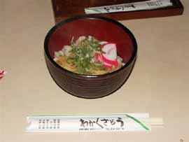 最初にお茶と、「お代わりできます」というおいしい漬物が出てきて、うどんが出て来るまでかなり待たされたから、しっかり土鍋で煮込んだのだろう。決して「生煮え」ではなく、うわさに聞いた「硬い」というほどでもなかった。味噌の味が濃厚すぎるかなと感じたが、ご飯も出て来て、うどんの汁が染み込んだネギなんかを載せて食べるご飯が、またうまい。なるほど、これは名物に値する「うどん」である。