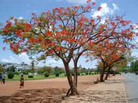 お医者さんになりたい 「カエプリアン(雨の月)」に入って、緑の樹がたくさんの真っ赤な花をつけて咲きほころんだ。「火炎樹」、僕の大好きな南国の樹だ。この国では「プカークローンゴック(孔雀の花)」という。タイでも孔雀の花と呼ぶらしい。ベトナムでは「ホアフォン(火炎樹)」、インドでは「グルモハール」と呼んでいた。どんな意味だったか忘れたが、デリーでは、その名前のついた場所に住んでいた。 雨が始まって少し涼しくなるかと期待していたが、甘かった。雨は数日に一度ザーッと降るが、すぐに止む。止むと、降る前よりもずっと強い南国の日差しが戻って、容赦なく大地を照りつける。水溜りは一気に蒸発し、湿度が上がり、却って乾期の暑さのピークの時よりも暑く感じる。でもプノンペンの空は雨期の空だ。大きな雲が立ち上がり、どんどん広がる。いろんな色の雲は果てしないプノンペンの空を自由に流れる。雲が大地に日陰のグラデーションを作る時、一瞬の涼しい風がプノンペンを走り抜ける。空を見ていると、僕の時間が止まる。バブル景気や選挙の喧騒も、金持ちの怒鳴り声も貧しい人たちの嘆きも聞こえない。僕はカンボジアの空と雲と一つになる。