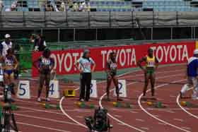 さて、ジャマイカ。この国は短距離などでメダリストや入賞者がたくさん出て、その熱狂ぶりはうらやましい。女子100mのベロニカ・キャンベルは、アメリカのローリン・ウイリアムズと同タイムの11秒01。きわどい写真判定で優勝。レースの興奮、終わった後のざわめきとはまったくの別世界がしばらく経って行なわれた表彰式。キャンベルのはにかむような笑顔と、ジャマイカの静かな、美しい旋律の国歌が心にしみた。表彰式で聞く国歌は圧倒的にアメリカ合衆国が多い。しかし、スタンド全員が起立、脱帽。国旗掲揚台を向いて、聞く国歌はどれもいい。
