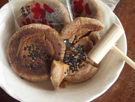前回の最後に「お楽しみに!」と書いた、とんでもなく硬い「せんべい」の話……それは「伊賀のかた焼き」という。どれくらい硬いのか……木槌(きづち)が付いていて、これで割ってから食べてください、というのだから、すごい。